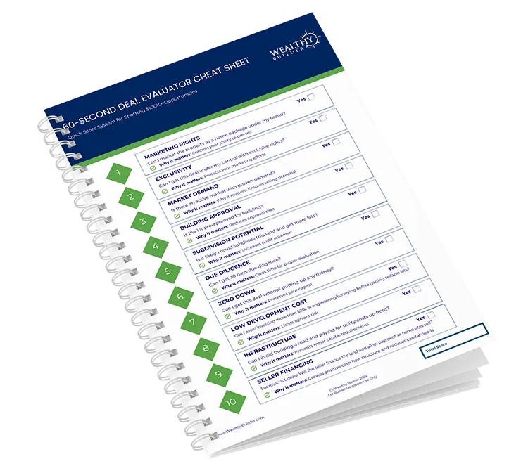 Get our 60-second land deal evaluator cheat sheet & the spreadsheet that will help you get paid faster with less friction.